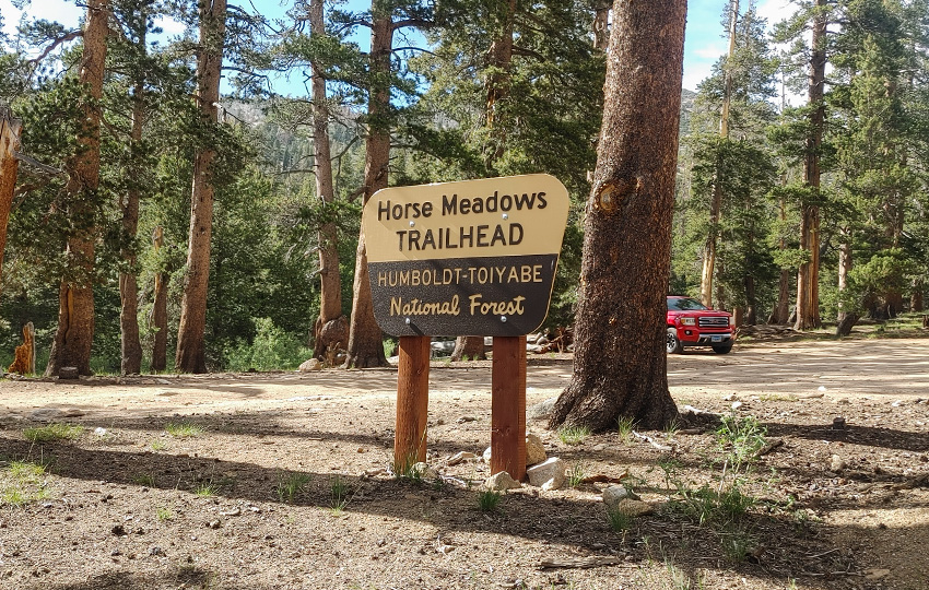 The Forest Service recently installed an official trailhead sign (as seen directly below) at this location. I honestly never knew that this area was called “Horse Meadows.” But that sign makes it super easy to find the parking area. And it’s located immediately after that second bridge on FS 051.
